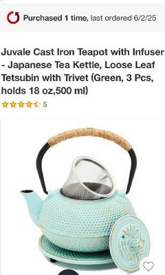 This is such a cute teapot! I love the design and that it can be placed on the stove. The only think i didnt like was that it looks a little smaller than i expected. I wish it was a little bigger so i can fit more water for the tea inside.
