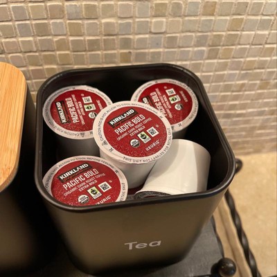 - What's Included: You will receive a set of (3) canisters labeled "Tea", "Coffee", and "Sugar". Designed at 4.6x4.8x4.6 inches, this compact set optimizes your storage while adding modern elegance to your kitchen decor. Each canister holds 48-ounces of your favorite ingredients, making this the ultimate coffee container set. Store more with style