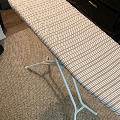 - What's Included: 1 cotton ironing board cover in a grey stripe design that measures 15 x 54 inches and includes a foam pad with a felt lining underneath to help prevent slipping