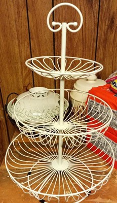 Juvale Large White Fruit Basket for Kitchen Counter, Metal 3 Tiered Fruit Stand for Countertop, Fresh Produce, Fruits, 18 In