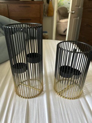 Elevate your decor in the office, kitchen, living room, or bedroom with this set of 2 gold and black candle holders. Place the elegant caged metal candle holders on the dining table, fireplace, dresser, or coffee table to create a warm and welcoming ambiance. Each candle holder for black and gold bedroom decor comes in 2 sizes and is suitable for small candles. These 2-toned candle holders also make great gifts for friends and family for special occasions such as birthdays, weddings, and holidays.