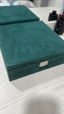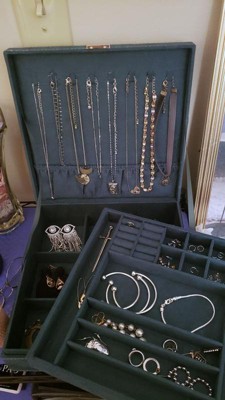 - Display Your Wares with Style: This 2-tier jewelry box includes a built-in necklace hanger and measures 10.5x10.5x3.5 inches that can serve as a beautiful display piece with it's lush green velvet and thoughtfully designed compartment layout