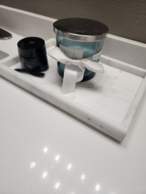 - White Marble Jewelry Tray: Arrange your perfume, candles, shampoo and lotion bottles, jewelry, cosmetics, and toiletries with this sleek white marble perfume tray