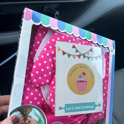 JuzToys Kids Cooking & Baking Toy Set with Chef Outfit – Chef Hat, Apron, Cookbook, Dress Up Clothes for Pretend Play – Pink