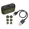 The Olive JVC RIPTIDZ True Wireless Earbuds with their cool 2-tone color design use Bluetooth 5.1 technology for a dependable connection and high-quality sound. Touch sensors provide simple and smart operation. These wireless earbuds come with a compact charging case, delivering up to 30 hours of playback. A quick 15-minute charge provides 90 minutes for music and movies. The Bluetooth earbuds are also waterproof IPX5 rated. Several sizes of earbud tips are provided. If the size of the earbud tips does not match the size of your ear canals or the earbuds are not worn properly in your ears, you may not obtain the correct sound qualities or call performance. In that case, change the earbud tips to ones that fit more snugly in your ears.