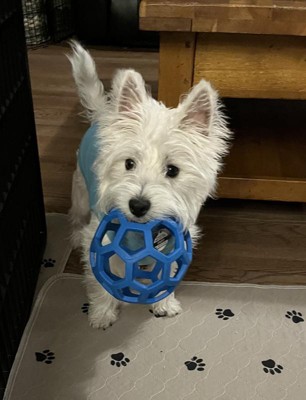 [This review was collected as part of a promotion.] My pup loves this little ball! She has a habit of destroying all of her toys no matter the material but this ball is holding up so well. It keeps her entertained all day long and is easy for her to play with.