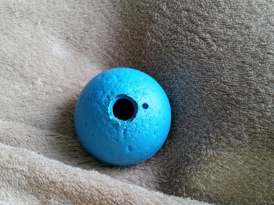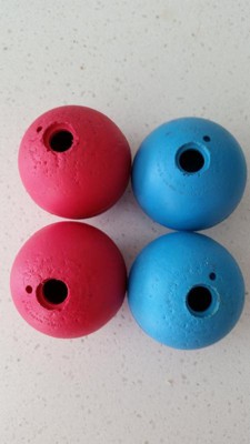 We have a small breed dog. She loves the squeek of this ball, and LOVES to chew it. Unfortuntely this is the 5th ball we've purchased in as many weeks. The problem is that the stem piece inside the ball that makes the sound isn't secured to the ball very well. My dog chews the ball and that piece keeps breaking (gets pushed in the ball). Wish it was a better made product so that this wouldn't happen.