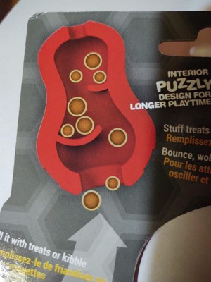 [This review was collected as part of a promotion.] Our dog loves this new toy! It has an internal maze designed for treats. It helps keep your dog entertained for quite a while. He keeps poking and rolling the toy trying to get the treat out. He is so smart. It doesn't take him long to get it out. It is made of non-toxic rubber, which is wonderful! This is a great toy! We would recommend it!