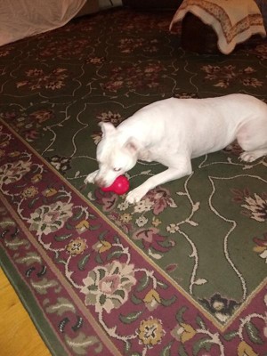 [This review was collected as part of a promotion.] I received the JW Tumble Teez dog toy a couple weeks age. My dog loves it. Keeps him entertained for hours. Like that I can fill it with his treats so he isn't constantly bothering me..lol. It's well made an heavy duty. My dog is a toy chewer an so far this toy he hasn't chewed it up an plays with it constantly.