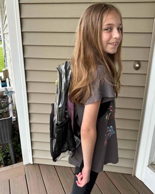 [This review was collected as part of a promotion.] My 10-year-old daughter has been wanting a clear backpack for sometime so I purchased this one for her. It is a lot bigger than I thought it would be, she loved it. The outer plastic seems heavy duty and strong. I have seen other clear bags before with no pockets but this one was made like a regular backpack and had many compartments and we really loved that about this bag. My daughter is about 4 feet 8 inch so I was happy this had adjustable straps. I received an incentive to write this review.