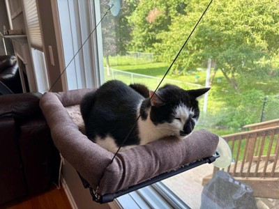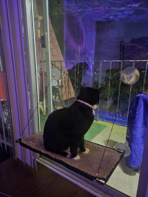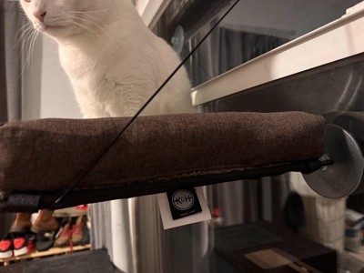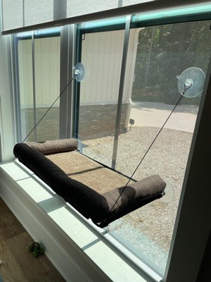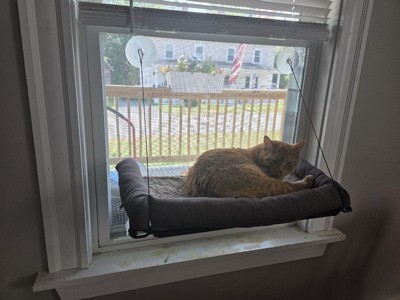 [This review was collected as part of a promotion.] This little suspended bed is so cute! We use it for the kittens we foster. It’s lightweight and it took a couple tries to get the suction cups right but once it’s up it’s great. The kittens play on it all the time and it’s holding up well!