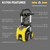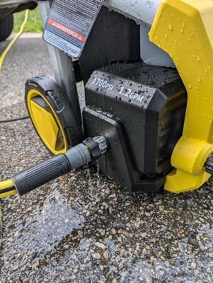 The K1700 high-pressure washer was developed to offer high cleaning performance and unparalleled ease of use. This portable pressure washer delivers 1700 PSI of TruPressure, ensuring you get the highest level of cleaning power driven by a reliable universal motor. Our portable power washer includes convenient features such as a unique on/off foot switch, a handy storage bin, a large one-half gallon removable detergent tank and three spray nozzles (including a turbo nozzle for intense cleaning). Metal pressure washer hose connections, oversized no-flat wheels, and an integrated aluminum frame make this unit highly durable. Universal quick-connect nozzles and standard M22 power washer hose connections simplify nozzle and accessory usage. Best of all, no tools are needed for assembly – you can set up and start using the K1700 power sprayer in five minutes or less! Backed by a two-year limited warranty, the K1700 electric pressure cleaner is perfect for tackling typical outdoor cleaning jobs.