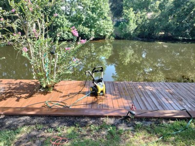 [This review was collected as part of a promotion.] The Karcher pressure washer really packs a punch. For a smaller, lightweight product, it really gets the job done. We recently needed to restain our dock and this came in so handy for pressure washing before we had to apply the stain. It was easy to set up and got all the dirt and grime off the wood. We would highly recommend for any household project.