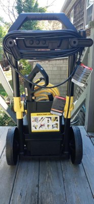 [This review was collected as part of a promotion.] Love this electric power washer. First of all it is very easy to move around and with the fold down handle it is easy to store. Set up was very easy. I had a smaller powerwasher and had to get very close to my patio to clean. This one is much more powerful. Also with the wheels and the quality it is easily moved around my patio. My husband tried it on his car and was very happy with the ease of effort and results. We both highly recommend. You will not be disappointed.