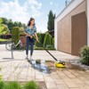The twin-jet rotating arm of the T 5 T-Racer surface cleaner is capable of removing dirt over large areas, providing fast and efficient cleaning of large outside areas. The surface cleaner can be adjusted so that the nozzle is positioned at the ideal distance from the surface, making it highly practical for any use. This means that hard surfaces such as stone and concrete can be cleaned just as effectively as more delicate surfaces, like wood and home siding. The T 5 T-Racer cleans several times more effectively than using a spray lance alone. The splash-free shroud reliably protects the operator and surroundings from spray water, and the "hovercraft effect" makes maneuvering more simple than ever. Quickly and easily clean vertical surfaces by converting the T-Racer into a handheld device - Simply remove the extension poles, and use the handles on top of the T-Racer to guide and clean garage doors, home siding, and fences. Compatible with pressure washers in the Kärcher K 1 to K 5 range.