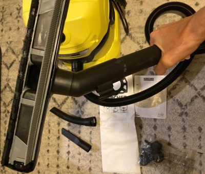 [This review was collected as part of a promotion.] I'm really amazed with this WD 4 vacuum from Kärcher and at how well it works. So far I've used it to clean my cars, unclog my ac unit drain pipes, and to clean spills and other things and it's handled every task without any issues. It's very lightweight and not to bulky and with the wheels it's really easy to move around and to store when not in use. The vacuum bags are very strong and can hold a lot without ripping and they attach really well. All the attachments are great and work as they should and the vacuum has areas to hold parts that aren't being used. Overall this is a really great vacuum that I highly recommend.