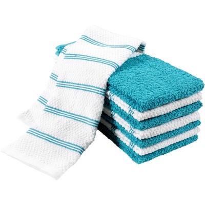 KAF Home Farmhouse Stripe Set Of 12 Kitchen Towels - 15" x 25", In Teal