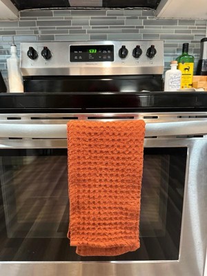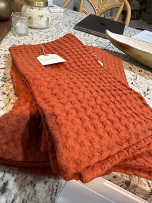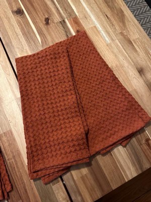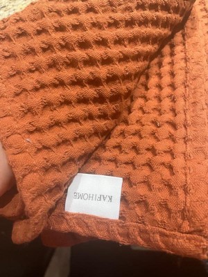 [This review was collected as part of a promotion.] These kitchen liners were much bigger than I expected from the picture. Sometimes I find waffle towels to be less absorbent, but these do a good job. The color is a pretty burnt orange. Overall, their size, color, and texture are 5 stars. They’ll make a great staple in my kitchen as we’re always cleaning up some mess or cooking! Cute and functional.