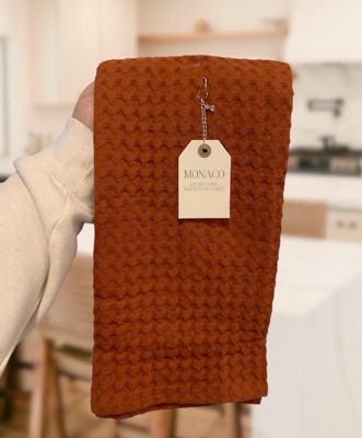No kitchen is complete without the perfect dish towel. These oversized 20" x 30" honeycomb waffle kitchen towels are super absorbent, plush, soft, and can handle any kitchen mess with ease. Coming in 6 vibrant colors that coordinate with the rest of the KAF Home Monaco Collection, these towels add an element of fashion and beauty to your kitchen. Whether it's drying dishes or cleaning the heaviest of spills, this towel is sure to be a favorite go-to. Ethically made in India, these pieces are meticulously crafted to perfection. 100% cotton. Machine wash cold, tumble dry low. Fabric becomes softer with every wash for superior feel, absorbency, and use.