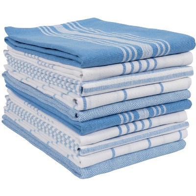 KAF Home Soho Set of 10 Recycled Cotton Kitchen Towels are a great set of towels that are a great size and very absorbent! They are 18" x 28" and work great for job that needs a big towel. Each towel has a band on the back of a corner for easy hanging. These towels are made from recycled yarns and great for everyday use. Easy to wash and dry and look great in the kitchen. This set has the navy theme and 5 different designs and comes in 2 packages. Highly recommend the KAF Home Soho Set of 10 Recycled Cotton Kitchen Towels for using around the house and better than paper towels!