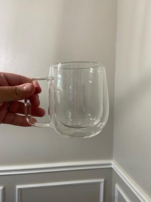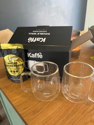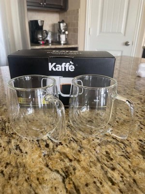 Kaffe 10oz Double-Wall Borosilicate Glass Cups - Set of 2: Dishwasher-Safe Glass Coffee Mugs for Hot Beverages