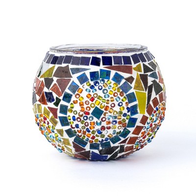Kafthan 3.4 in. Handmade Ecru and Brown Mosaic Glass Votive Candle Holder