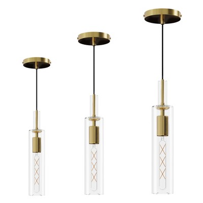 KAISITE 15.7in Milk Glass Pendant Light with Brass Stem - Modern Large Opal Cylinder Hanging Light for Kitchen Island Dining Room