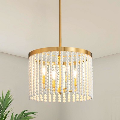 KAISITE 4-Light 18-in Boho Beaded Chandelier with Wood Beads for Kitchen Island