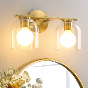 Introducing our elegant dual-head Bathroom Vanity Light, designed to elevate the style and functionality of your bathroom. This light fixture features a sleek Matte Black, Brushed Gold, or Brushed Nickel metal finish, making it a perfect match for various modern bathroom styles. The durable glass lampshades provide soft and evenly diffused light, ensuring a warm and inviting atmosphere. With a flexible, dimmable function and a space-saving dual-head design, this vanity light is ideal for smaller spaces. Easy to install and mount in either direction, it combines both practical and stylish features to suit all your lighting needs.