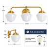 Elevate your bathroom style with this 3-light vanity fixture, crafted from durable metal and finished with a sleek, modern silhouette. The white glass shades create a warm, inviting glow, perfect for grooming tasks or adding ambiance. Designed with three E26 bulb sockets (40W max each, bulbs not included), the light is fully dimmable when paired with dimmable bulbs and a compatible switch, giving you full control over brightness.Flexible installation allows the fixture to be mounted with shades facing up or down to match your space. Its versatile design makes it ideal not only for bathrooms but also for bedrooms, hallways, or above a kitchen sink. Combining timeless style with practical function, this vanity light is an elegant and reliable choice for any home.