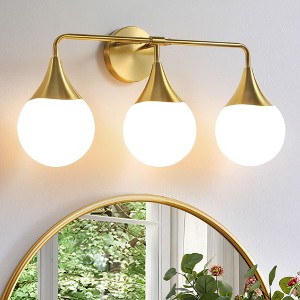 Infuse your bathroom with an elegant touch. This high-end bathroom vanity light, with its exquisite design, is the ideal lighting choice for modern dressing tables. It ingeniously combines retro charm with contemporary functionality, offering two popular finishes: Brushed Gold and Matte Black. Paired with 2-lamp or 3-lamp configurations, it can easily adapt to different mirror cabinet sizes and decorative styles, creating a layered lighting effect. In the outline design of the medieval modern style, the milky white frosted glass balls and the metal lamp posts complement each other, presenting an elegant texture while maintaining a lively and playful touch, creating a dreamy atmosphere for the bathroom or any space. The lamp is made of moisture-proof and durable materials. The spherical matte lampshade can gently diffuse light, eliminate dazzling glare, and project warm and delicate soft light, creating a comfortable environment as if you were in a spa. The innovative 180° adjustable installation design supports upward or downward adjustment of the lamp head direction. Whether installed above the mirror, on both sides of the sink, at the bedside, or in the corridor, it can flexibly adapt to your space requirements. Compatible with all standard E26 bulbs (≤60W), it can be adjusted in brightness by pairing with a dimmer switch (excluding bulbs and dimmers), easily creating a delicate texture of layered lighting. The complete set of installation hardware and simple wiring process ensure convenient installation. Daily cleaning only requires wiping with a dry soft cloth. For you who pursue taste, it achieves a perfect blend of style and function.