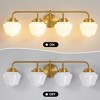 Brighten your bathroom with this 4-light vanity fixture, crafted from durable aluminum with a sleek modern silhouette. The white glass shades provide a soft, flattering glow that enhances any space, while the rust-resistant finish ensures lasting performance.