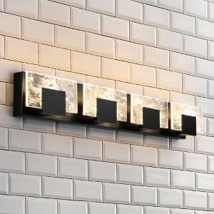 - With its modern, artistic design and captivating acrylic shade, this 4-light fixture creates a stunning focal point in any bathroom