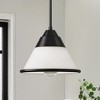 This matte black pendant light brings a clean, modern touch to your kitchen island or dining table. The frosted glass shade softly diffuses light, creating a warm, glare-free glow that enhances your space without overpowering it. Designed for versatility, it includes multiple downrods for adjustable height and fits perfectly on flat or sloped ceilings. The sturdy metal frame resists rust and maintains its sleek finish, even in humid kitchen environments. Compatible with dimmable E26 bulbs, it transitions effortlessly from bright task lighting to cozy evening ambiance. Easy to install and beautifully balanced, it’s an elegant lighting upgrade that feels both modern and timeless.