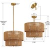 Boho 18" Rattan Double Drum Chandelier Light Fixture 5-Light Dimmable Natural Woven Pendant for Kitchen Island, Dining Room & Bedroom