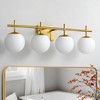 Make a stunning statement with the expansive design of the Kaisite 4-light vanity fixture. The striking [Antique Gold / Brushed Nickel / Matte Black] finish brings a luxurious presence, while the four clear and frosted glass shades cast an abundant, flattering light. This impressive fixture is perfectly suited for larger vanities or open spaces, serving as a breathtaking focal point that bridges the gap between contemporary and classic decor.