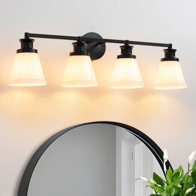 Transform your bathroom into a luxurious sanctuary with the KAISITE 4-Light Vanity Light. Its expansive, four-arm silhouette creates a grand, statement-making look, framing your mirror with four beautiful, hand-blown opal glass shades that cast a soft, flattering glow, turning your daily routine into a spa-like experience.