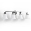 - Make a statement with this grand, four-arm silhouette. Paired with elegant hand-blown opal glass shades, it creates a balanced, luxurious focal point that elevates any master bathroom or vanity.