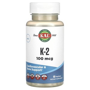 Trust Quality Since 1932 1 Daily Cardiovascular & Bone Support Non-GMO Vegan Gluten Free Dietary Supplement Suitable for Vegan Diets Discussion: KAL® Vitamin K-2 (MK-7) is derived from fermented natto, which may offer optimal bioavailability and higher efficacy levels in the body. Vitamin K-2 may help support bone formation and cardiovascular health.