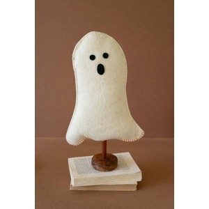 Kalalou Handmade Felt Ghost on Wood Base – Halloween Shelf Decor