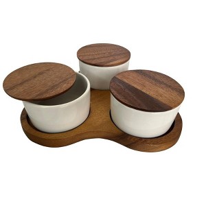 Product Name: Kalmar Home Acacia wood Condiment Server with 3 white bowls