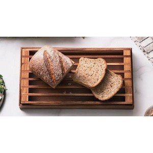 Crafted from high-quality acacia wood, this stylish and functional accessory is designed to effectively contain bread crumbs within the tray portion, preventing them from scattering all around.