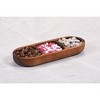 - Crafted from high-quality acacia wood, known for its durability and beautiful grain patterns, the elongated design of our tray offers ample space to showcase a variety of treats.