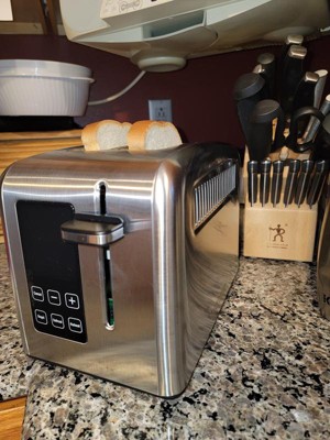[This review was collected as part of a promotion.] This is one smart toaster. Just the touch of a button and I can pick how toasted I want my bread or bagel or whatever I am toasting. I really like that the slits are wide enough for bagels. I recommend this toaster to everyone!