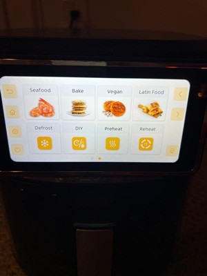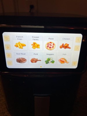 [This review was collected as part of a promotion.] I got this air fryer from influencer to try. I love this. I have a ninja air fryer that I absolutely love. This performs the same if not better. It is a lot bigger than the one I have as far as inside space goes which I love with 4 children. I have made chicken legs in it and they came out perfectly. There are a lot of options in the screen. Preset buttons if you will. We probably won't use a lot of them but it is nice to have options. It took me awhile to trust the process instead of entering my own times and temps but I finally did and have ventured out from just frozen foods and reheating. I would recommend this to anyone. It's a little fancy for me, someone more well versed in the features of an air fryer and all the amazing things it can do will very much appreciate this. I love it. It just has a bit more flair than I need. It is also a lot quieter than the ninja air fryer which I actually like.