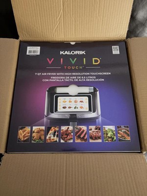 Rediscover cooking more than just fries and chicken with the Kalorik Vivid Touch 7 Quart High-Resolution Touchscreen Air Fryer. With this new air fryer, the cooking possibilities are infinite. This product simplifies cooking while providing you with endless meal options at your fingertip. Enjoy your favorites to the precise doneness and without the guilt. Don't limit your choice to just chicken; select your exact type for precision cooking. Whether you are in the mood for wings, breasts, thighs, tenders, drumstick or a half chicken, this unit allows you to choose the exact quantity or weight and adjusts time and temperature to ensure your food is cooked to perfection. Expand on your potato option beyond fries, stretch your seafood choice and explore more vegan food option in the menu library. With over 200 presets across 12 food categories, creating your favorite meals is easier than ever. The high-resolution display and intuitive touch controls, takes all the guesswork out of using this unit. Monitor through the easy-view window without opening the basket as your food cooks to perfection. This air fryer features multilingual and multi-metric functionality, offering language options in English, Spanish, French, and Mandarin, with temperature readings in °F or °C. Stay informed with the Shake Reminder and Ready Alert, which keep you on track throughout the cooking process. The removable basket and dishwasher-safe, crisping tray make cleanup effortless. Confidently explore new flavors and cuisines with the new Kalorik Vivid Touch 7 Quart High-Resolution Touchscreen Air Fryer.