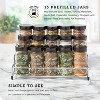 - INCLUDES: 3-tier wire spice rack, 15 glass spice jars filled with spices, labeled black caps and sifter discs