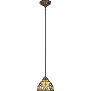 This lovely Tiffany style collection features a handcrafted genuine art glass shade in hues of amber, caramel, ginger and emerald. The glass is arranged in a classic art nouveau pattern. The warm color palette creates a harmonious balance of light, and the complementary base is finished in a vintage bronze for the perfect contrast. Due to its uniqueness, no two Tiffany lighting products are identical, giving you a real handcrafted, one-of-a-kind statement piece for your home.