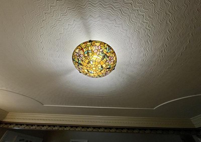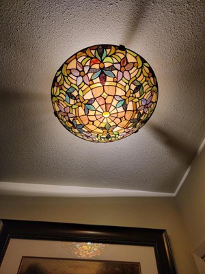 [This review was collected as part of a promotion.] I recently bought a home with dated light fixtures, and I have been going from room to room replacing fixtures throughout the house. I purchased the Roseto Tiffany Mount Ceiling Fixture for the front door entryway and it is just lovely. It makes a colorful statement as you enter, but is not overbearing. The earth tones and floral design complement my wood flooring, wood trim and slate tile beautifully. The Roseto Tiffany Ceiling Fixture is also in keeping with the style and feel in my home. Beautiful product!