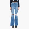 Conquer the world with our Eva Essentials High Rise Bootcut Jeans. These bootcut jeans come in a charming medium wash style with minimal fading and whiskering. Sits above the waist and flares out with a frayed side slit hem. Made with our stretchy fabric, that lets you move around in comfort all day. Features small detail destressing, a 5 pocket style, front single button closure, and zip fly.